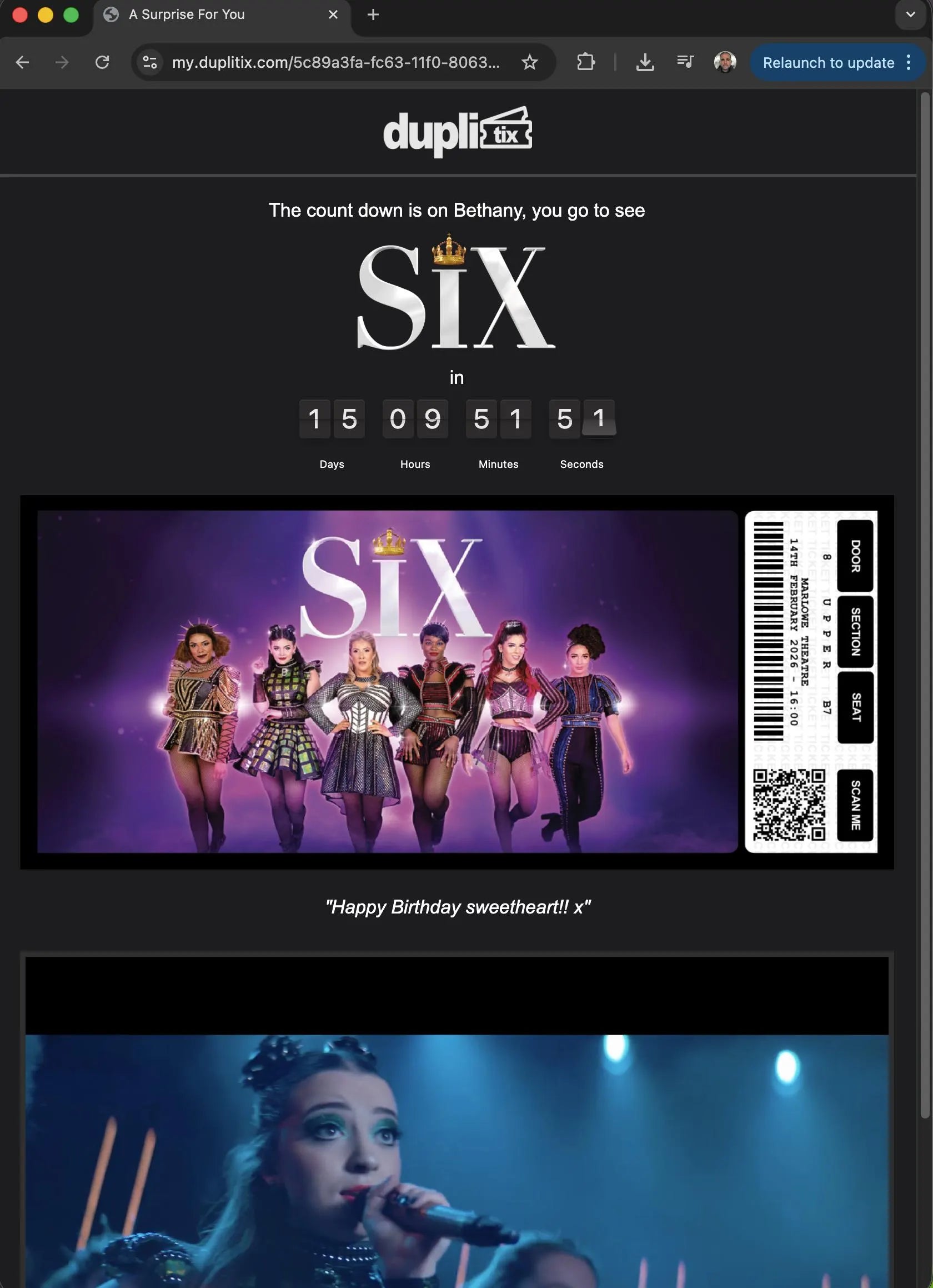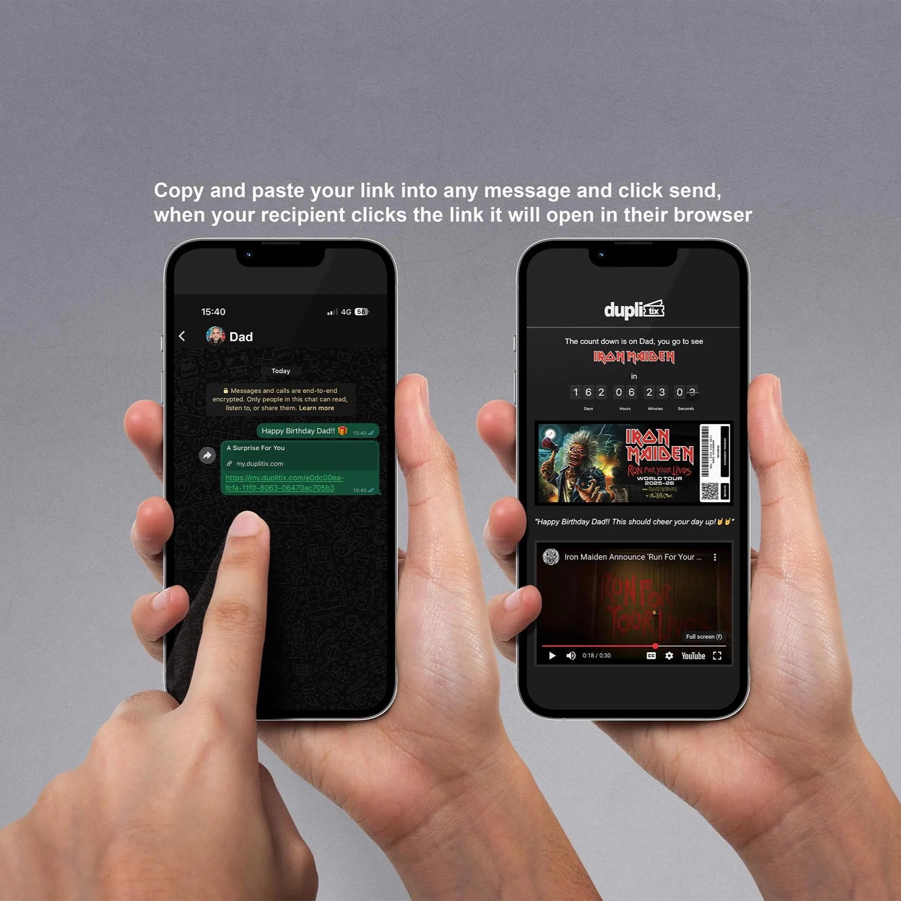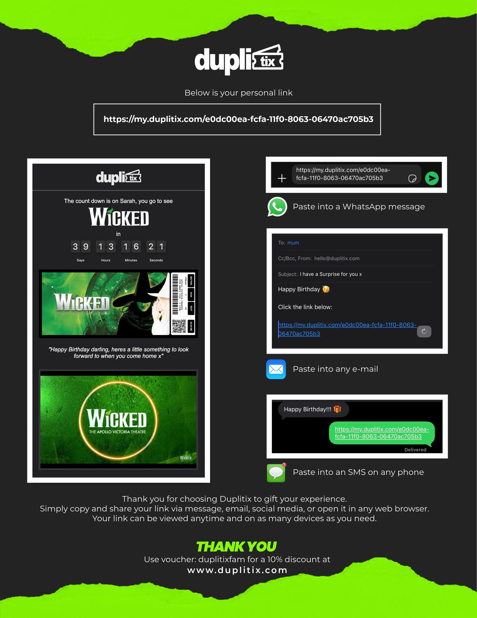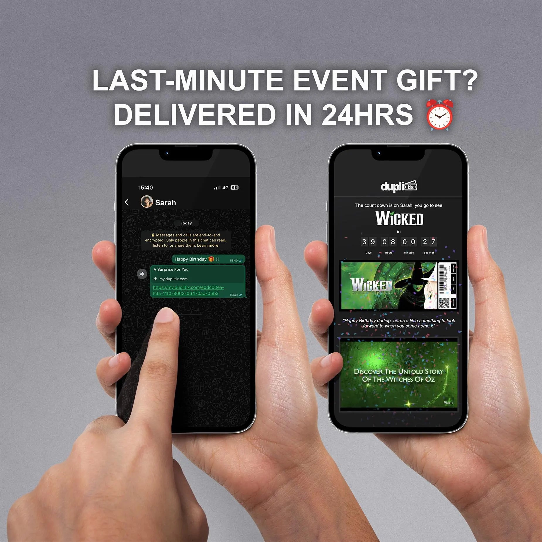 Elevate your gift game with the Duplitix Online Gift Ticket Reveal, the perfect way to let your loved one know they're off to a special event, without the hassle of delivery costs and shipping times.